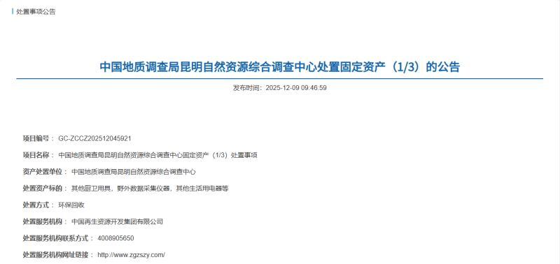 中国地质调查局昆明自然资源综合调查中心处置固定资产公告